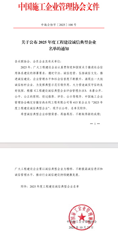 近日,中国施工企业管理协会正式公布2025年度工程建设诚信典型企业及诚信企业家名单。工程局公司凭借在诚信经营、合规...